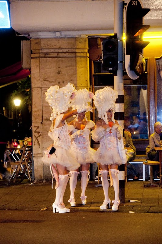 As we were walking home, we chanced upon the 3 drags who we first noticed in the street party before. This time, instead of chatting up a party-goer, they were trying to cross the street! It was such a perfect cap to the day as it was such a funny and surreal sight to watch these 3 men in matching white dresses, stockings and massive wigs at a traffic light. They eventually crossed the road, took off their wigs and jumped in a taxi. Hilarious.