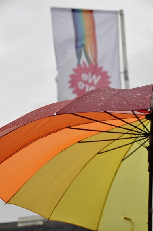 The weather that day was a mixed bag of slight rain and sunshine. It didn't stop the parade and definitely didn't hold back the crowds. Instead, umbrellas shot up and the party carried on!