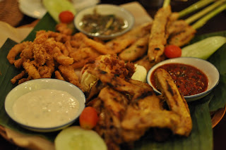 The Balinese themed restaurant serves a mixture of authentic Balinese and western cuisine. Of course, we were there for the Balinese meal, as i felt that the western food seemed out of place in this restaurant. Environment wise, the ambiance is laid back and the interior is beautifully decorated with balinese style furniture, plush cushions, buddha artifiacts and Balinese handicrafts - the perfect environment to settle in for a scrumptious meal.