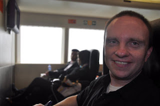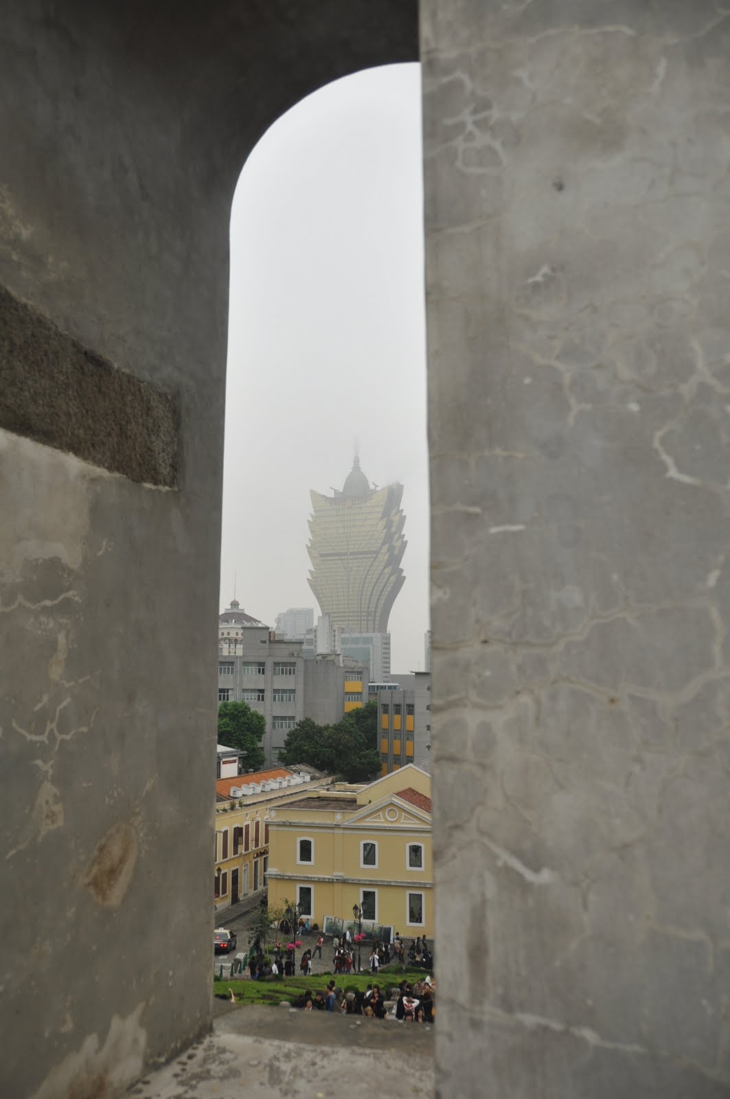 Left: If you look hard enough, you can spot Andy and Simon on the platform! Right: Looking out the top of the facade at Grand Lisboa Hotel (the leaf-shaped building)