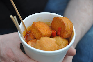 And here is us resting with our spicy fish ball snack before the big climb up the steps...