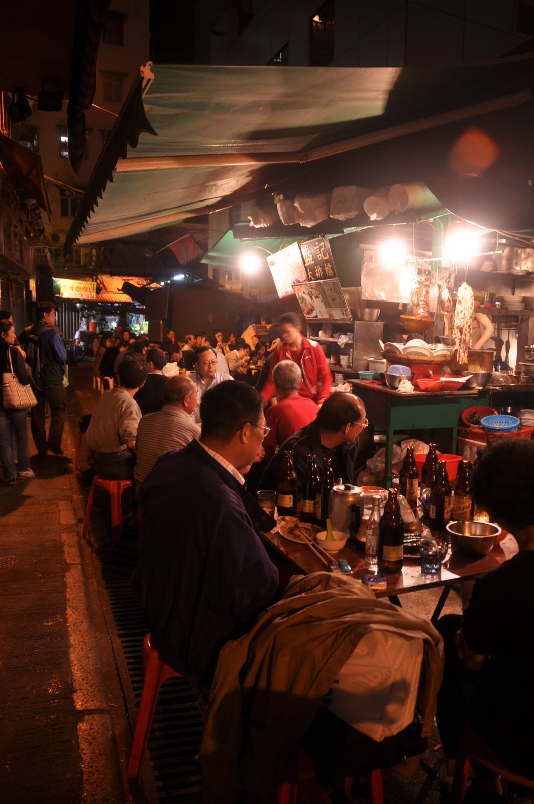 For a taste of the Hong Kong style street food culture and atmosphere, we found one of the last few remaining 'Kai Pai Dong' (cantonese for roadside food stall) that still exists in the city. Many have chosen to move their businesses indoors into an air-conditioned environment, but some have retained their eating culture. The roadside stall that we discovered is tucked in a dark and narrow alleyway.