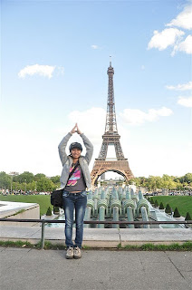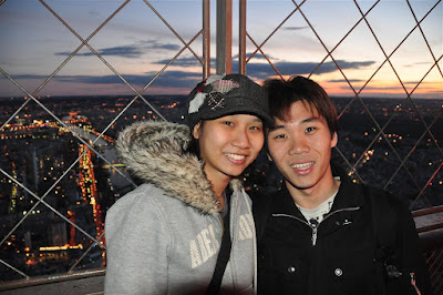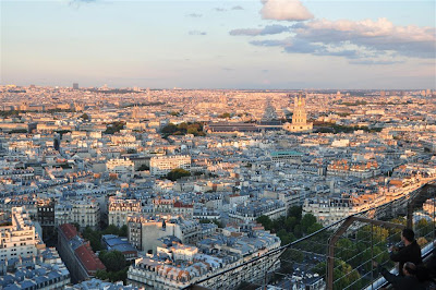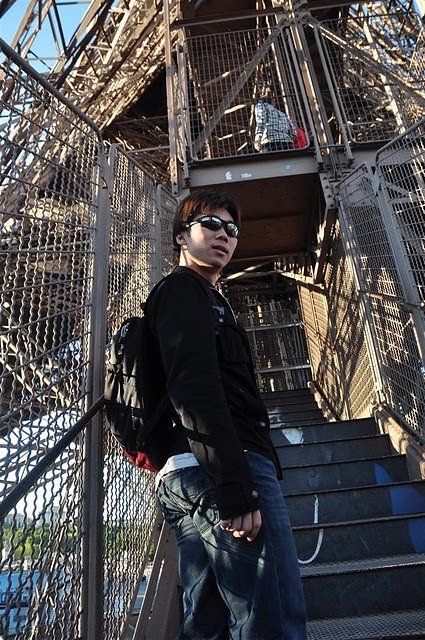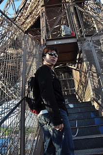 On the way to the tower, we passed a multitude of street vendors selling mini Eiffels in all sizes, shapes and lighting effects. All offered to give a 'special price'. We performed some clever maneuvering around them to the base only to find a massive que waiting to climb the monument. Looks like we're not the only crazy people out there! It seems that we had 1021 steps to climb to the peak. But of course, we didn't know this as we placed ourselves in the queue. What we did know then was that we had a big climb ahead of us, and all this before lunch! Quickly buying a pricey plain hot dog from the nearest stand, we had enough sustenance to get us to the top.