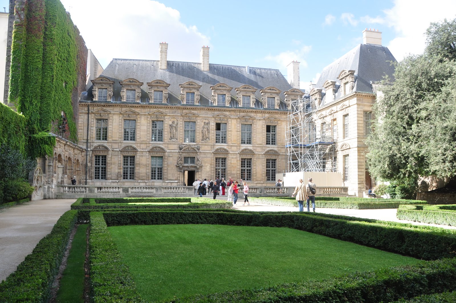 A beautiful secret garden. This expansive garden is located behind buildings and accessible only through one doorway. There are many such hidden gardens located in all Paris.