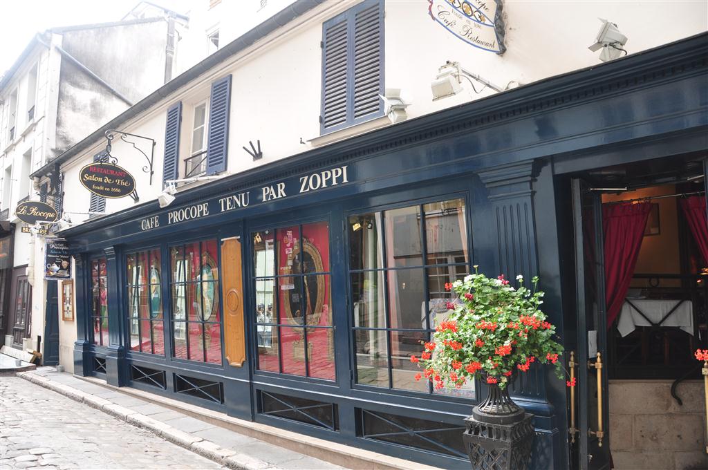 Le Procope on 13, Rue Ancienne Comedie: The oldest cafe in Paris (Founded 1686). This cafe has claimed to be the meeting place of great historical figures such as Napolean Bonaparte, Voltaire, Marat and Benjamin Franklin.