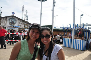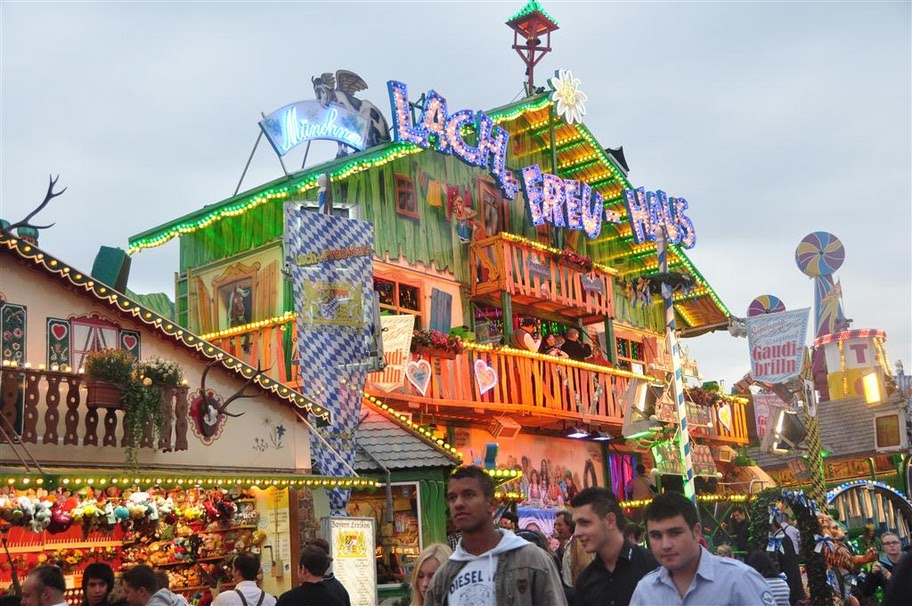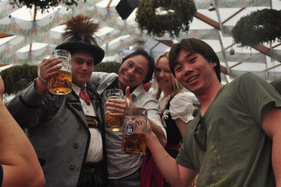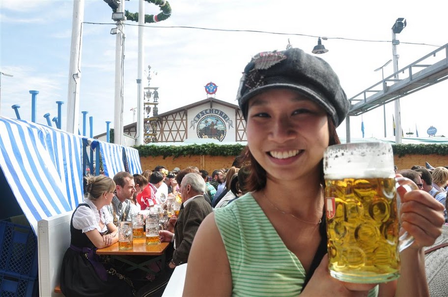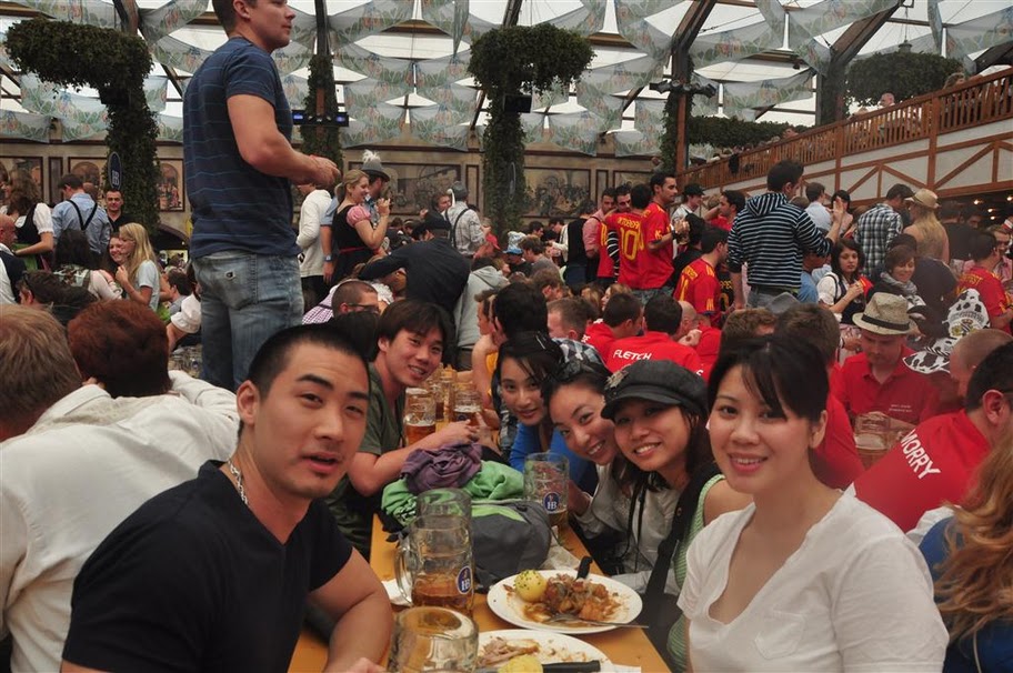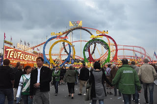 When the parade had passed, we made our way to the festival. On arrival, I was blown away at how large the grounds were and that it wasn't just all about beer! It was also a carnival with every ride you can imagine. There was a massive Olympic ring roller coaster (5 loops) and those rides that take you up ten thousand meters high and drops you in 100kmh. It was nuts. The person who thought of combining an alcoholic festival with carnival rides must either be crazy or a genius. And with the surprisingly lack of spews that i found throughout the festival, I reckon it was a genius at work. Young or old, there was something for everyone at the Oktoberfest.