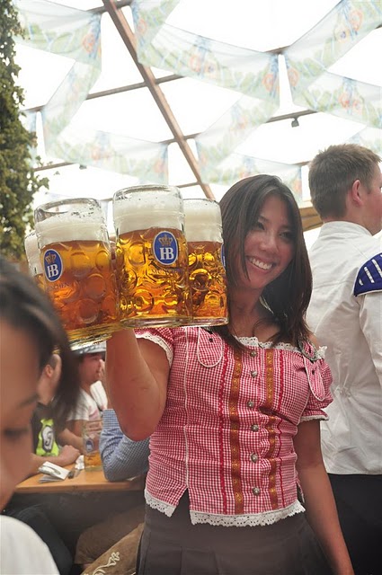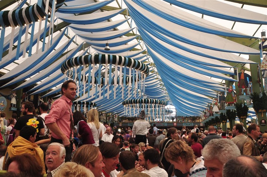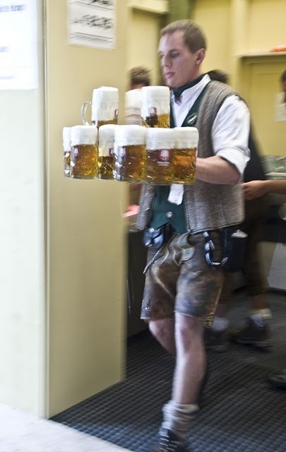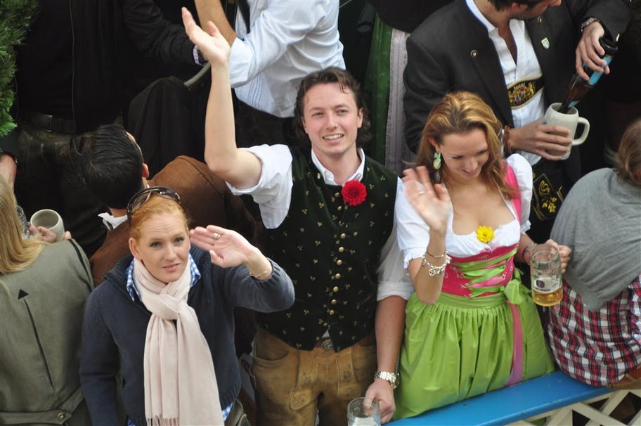 Lookit' him go! He must have arms of steel!It was really hard to find seats in any of the beer halls as the Oktoberfest started to ramp up. Thankfully some of our other friends have managed to find a table in another beer tent (Bräurosl) where we finally ordered our first beer and some food.