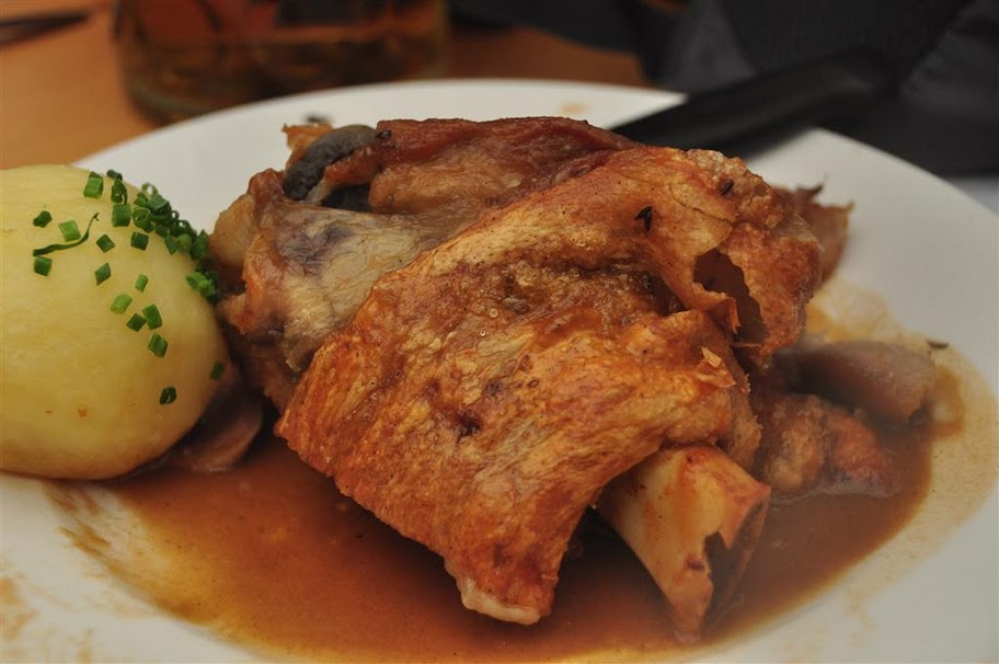 Just as we squeezed into our seats, more food came along! Who could resist the famous German pork crackling! With the lachsforelle a distant past at this stage, i tucked into my pork knuckle.