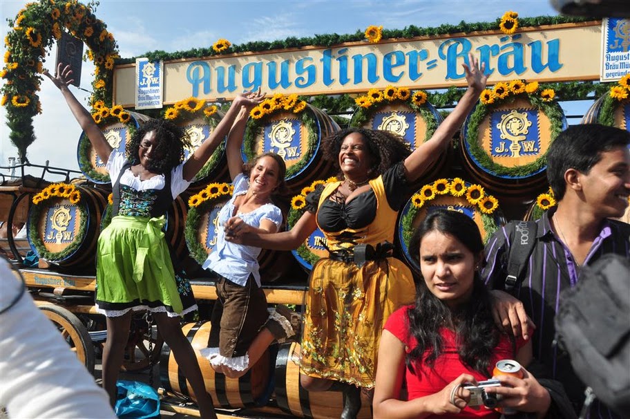 What a sight! There were pretty horse-drawn carts laden with giant beer barrels, happy revelers on carriages with their first brew on hand and one musical band after another blowing their tune as they paraded past. There were performers and bands of musicians wearing their traditional German outfits waving at the crowds.
