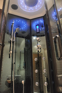 And a shower that is equipped with disco-lights, 7 shower nozzles from all angles, overhead waterfall and radio... now this is how showers should be done!